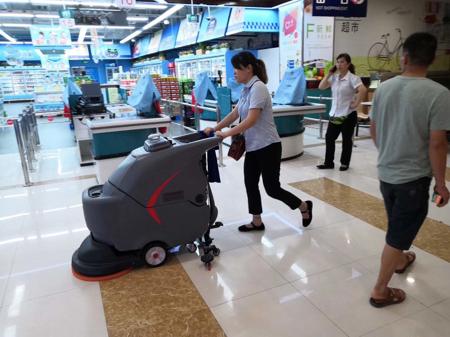 1、選擇洗地機(jī)類型要根據(jù)超市地面清潔以及超市面積大??;
