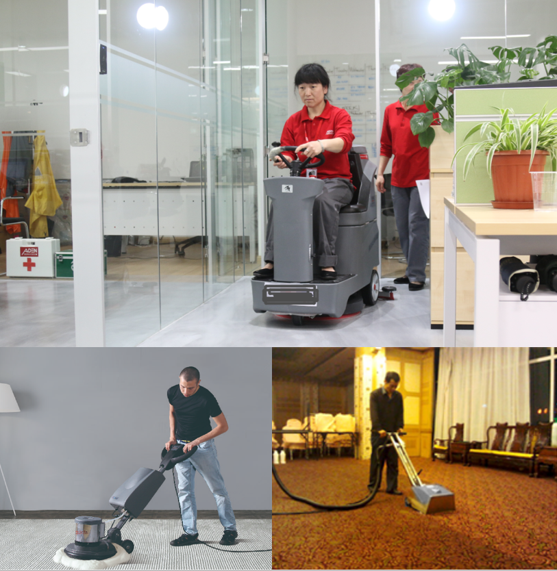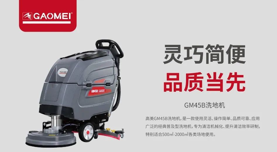 品性兼優(yōu),助力清潔。隨著社會(huì)經(jīng)濟(jì)的發(fā)展,人們對(duì)于工作生活的環(huán)境要求不斷提高。例如高檔寫(xiě)字樓等辦公場(chǎng)所環(huán)境,有賴于高效、省心的清潔方式來(lái)維護(hù)。高美在應(yīng)對(duì)清潔效果、清潔效率、噪音控制、形象等高標(biāo)準(zhǔn)需求方面,有著豐富的經(jīng)驗(yàn),并深受市場(chǎng)信賴。重點(diǎn)推薦產(chǎn)品高美GM-MINI駕駛式洗地車高美GM45B手推式洗地機(jī)場(chǎng)景介紹大廳:地面多以大理石、瓷磚等硬質(zhì)材料為主,日常人流量大,污漬產(chǎn)生快,清潔度要求高,需要保持較高的清潔頻率,單次作業(yè)時(shí)間要求極短??筛鶕?jù)面積大小選駕駛式或者手推式洗地機(jī),可以快速有效實(shí)現(xiàn)清洗、吸干的同步作業(yè)。走廊:包電梯、電梯間、走廊等場(chǎng)所,較為狹窄,適合更加小巧靈活的清潔設(shè)備,手推低速更安全,且能滿足一定清潔效率的需求。GM45B手推式洗地機(jī),小巧靈活,兼具品質(zhì)和性價(jià)比,是中小型場(chǎng)景的理想之選。辦公場(chǎng)所:場(chǎng)景較為復(fù)雜,硬質(zhì)地面可選用靈活小巧的洗地機(jī)。如果是地毯,日常清潔可以選用高美吸塵器V20,中長(zhǎng)期護(hù)理可以選用高美地毯清洗機(jī)GM-4或者干泡地毯清洗機(jī)FB1517/MF-10。大樓外圍、衛(wèi)生間等場(chǎng)所:多以硬質(zhì)地面為主,同樣可以選擇以上兩款機(jī)型來(lái)進(jìn)行清潔作業(yè)。涉及大理石等地面,需要定期護(hù)理的,可以選用高美晶面加重翻新機(jī)FC-2517。