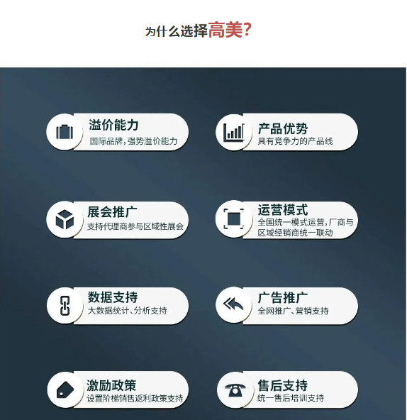 支持渠道打造精品智慧展廳,即【高美智慧清潔體驗(yàn)館】,提升用戶體驗(yàn),線上線下一體化運(yùn)營,全國渠道一張網(wǎng)。借助智慧清潔體驗(yàn)館,系統(tǒng)提升品牌和渠道服務(wù)水準(zhǔn)和競爭力。