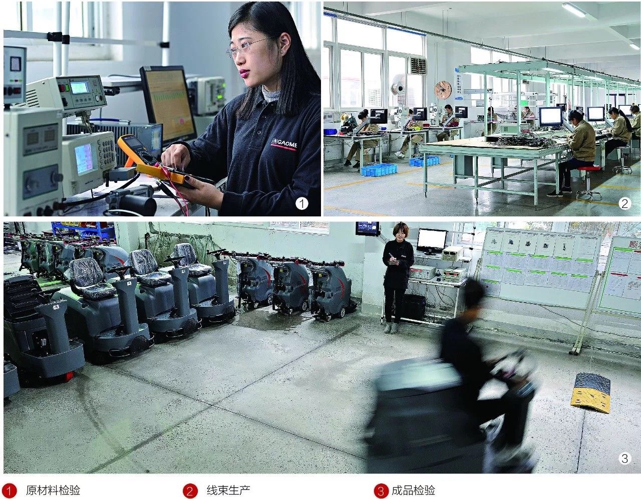 廠房面積15000㎡,員工202人的高美規(guī)格龐大,支撐起每月600-700臺的洗地機(jī)倉儲周轉(zhuǎn),且各項(xiàng)指標(biāo)皆中國領(lǐng)先:從進(jìn)貨檢驗(yàn)(IQC)到成品(FQC),實(shí)施全程品質(zhì)管理監(jiān)測,提前預(yù)警;關(guān)鍵零部件和整機(jī)激光打碼,產(chǎn)品操作流程全程視頻錄像,結(jié)合流水線生產(chǎn)方式和ERP管理系統(tǒng),從原材料進(jìn)料到成品出庫全程可追溯。實(shí)現(xiàn)管理可視化、標(biāo)準(zhǔn)化、流程化。